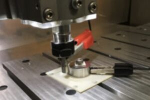 測定を始める前に、ワークが絶縁されている=アースに落ちていないことと、スピンドル側についているクリップをワークに当てた時に