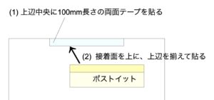 (2) 両面テープにポストイットを接着面を上にして貼る