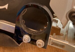まず、固定刃両側の調整ボルトを少し締め込んで、電ドルでリール刃を回しながらコンパウンドを塗り付けるとジャリジャリあるいはガリガリという感じの音がします。